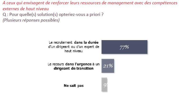La où l’étude est intéressante, c’est que 21% des entreprises qui souhaitent recruter un manager souhaitent le faire sur une période de courte durée. Elles feront donc appel à des managers de transition pour palier à des situations d’urgence. L’urgence ne signifie pas crise comme le souligne « Marc Pagezy » (PDG d’Eurosearch & Associés). Le management de transition est utilisé pour se positonner sur un nouveau marché en urgence ou pour renforcer une équipe à la peine. Les entreprises qui font appel à des managers de transition n’ont souvent pas le temps d’effectuer un recrutement classique qui peut prendre parfois trop de temps.